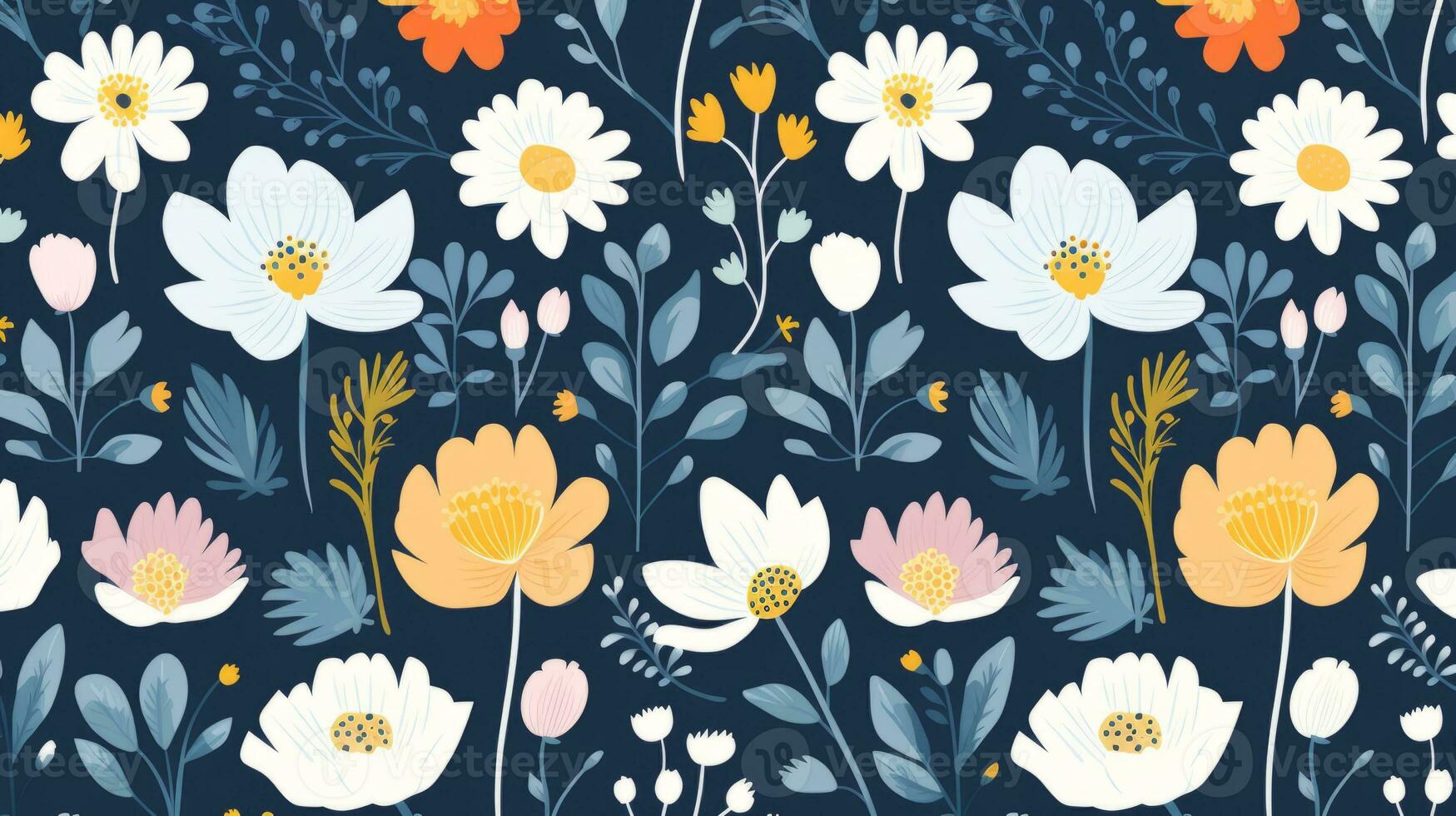 Delightful and whimsical flower pattern with a hand drawn feel. Generative AI Pro Photo