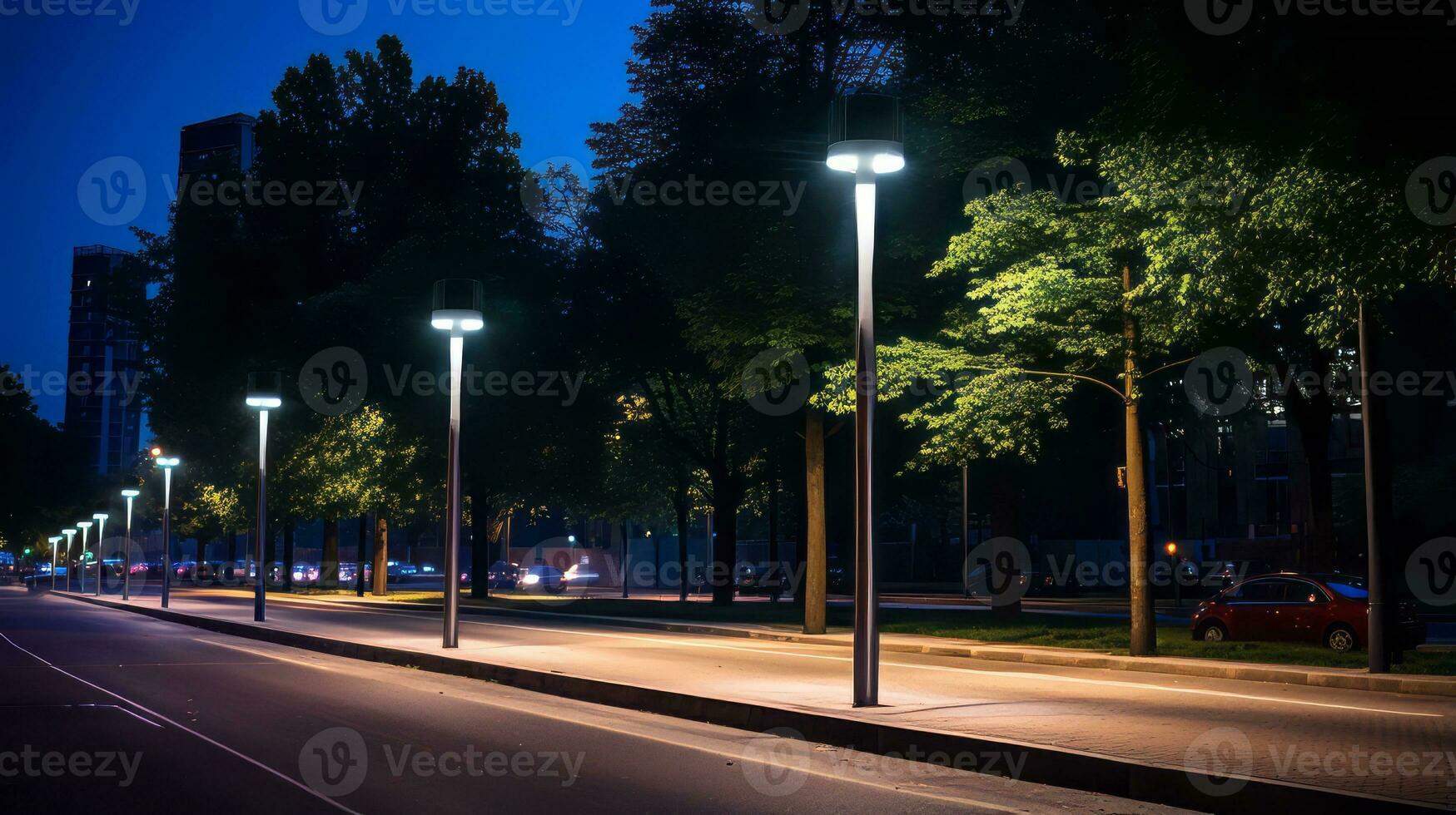 IoT Controlled Streetlights Traffic Based Brightness. Generative AI Pro Photo