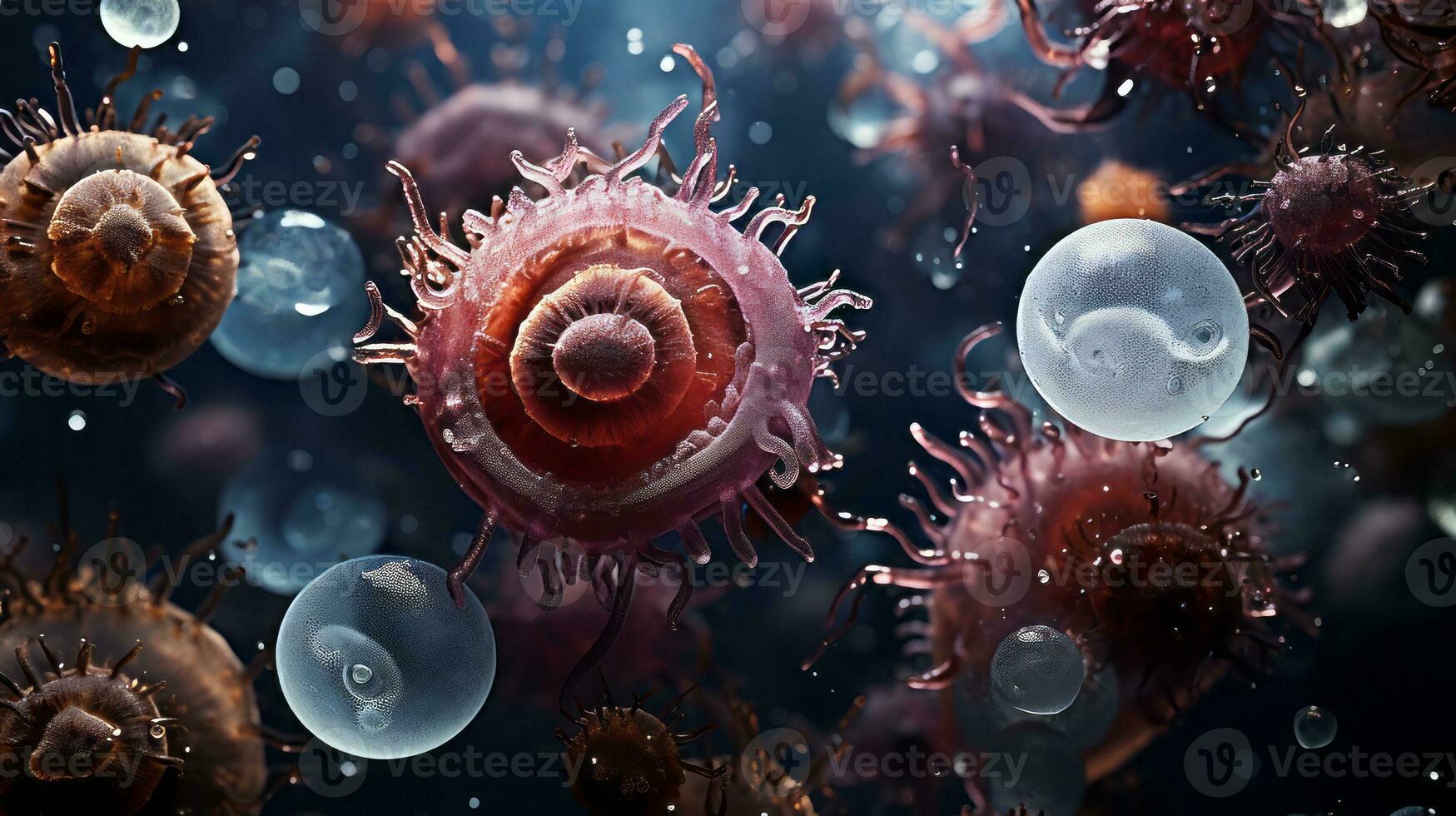 Microscope view of mutated aquatic organisms. Generative AI Pro Photo