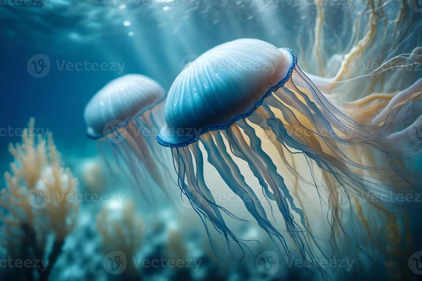An ethereal jellyfish depicted in mesmerizing submerged wide scale. Creative resource, Pro Photo