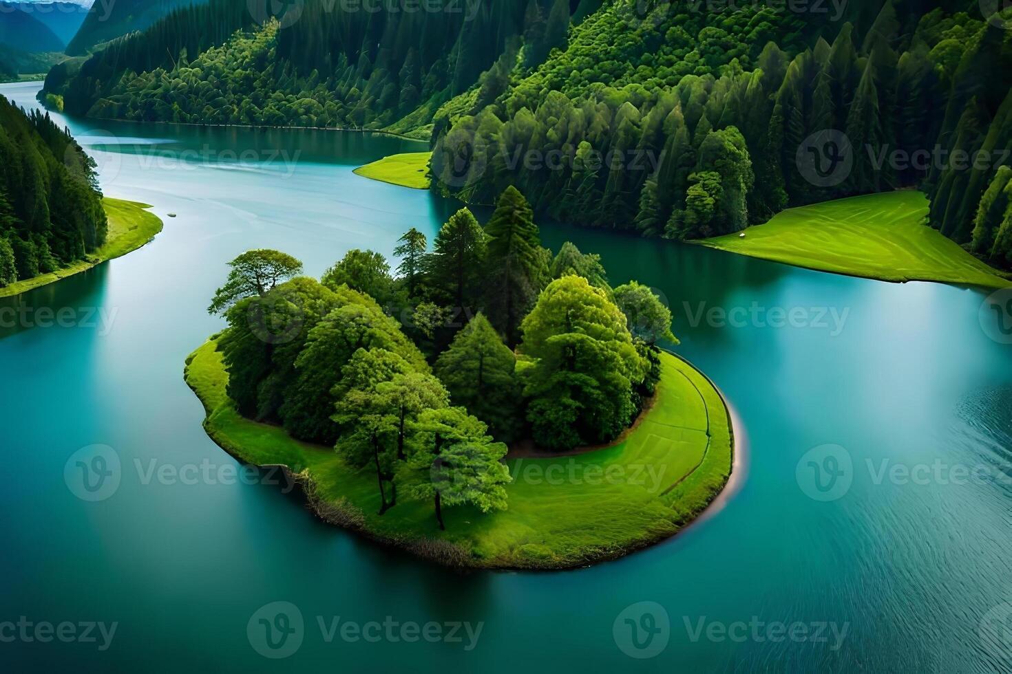 An antenna lookout of a odorize river flowing through a dense afforest , creating a captivating lifelike radiotherapy model. Creative resource, Pro Photo