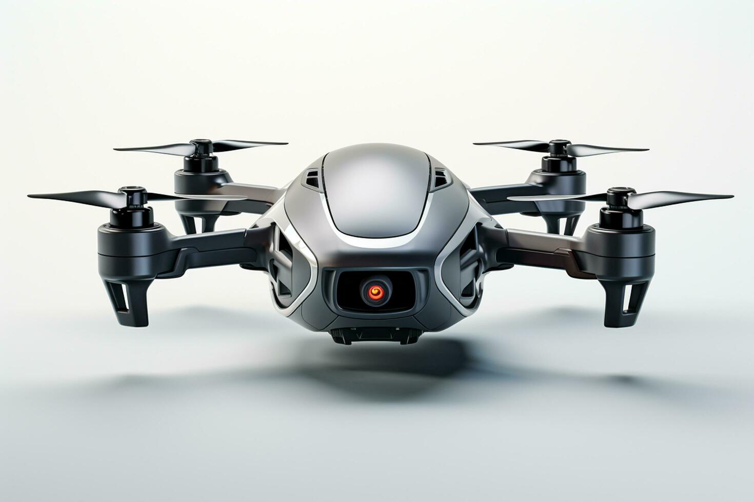 Drone with digital camera on a white background. 3d rendering Ai Generated photo