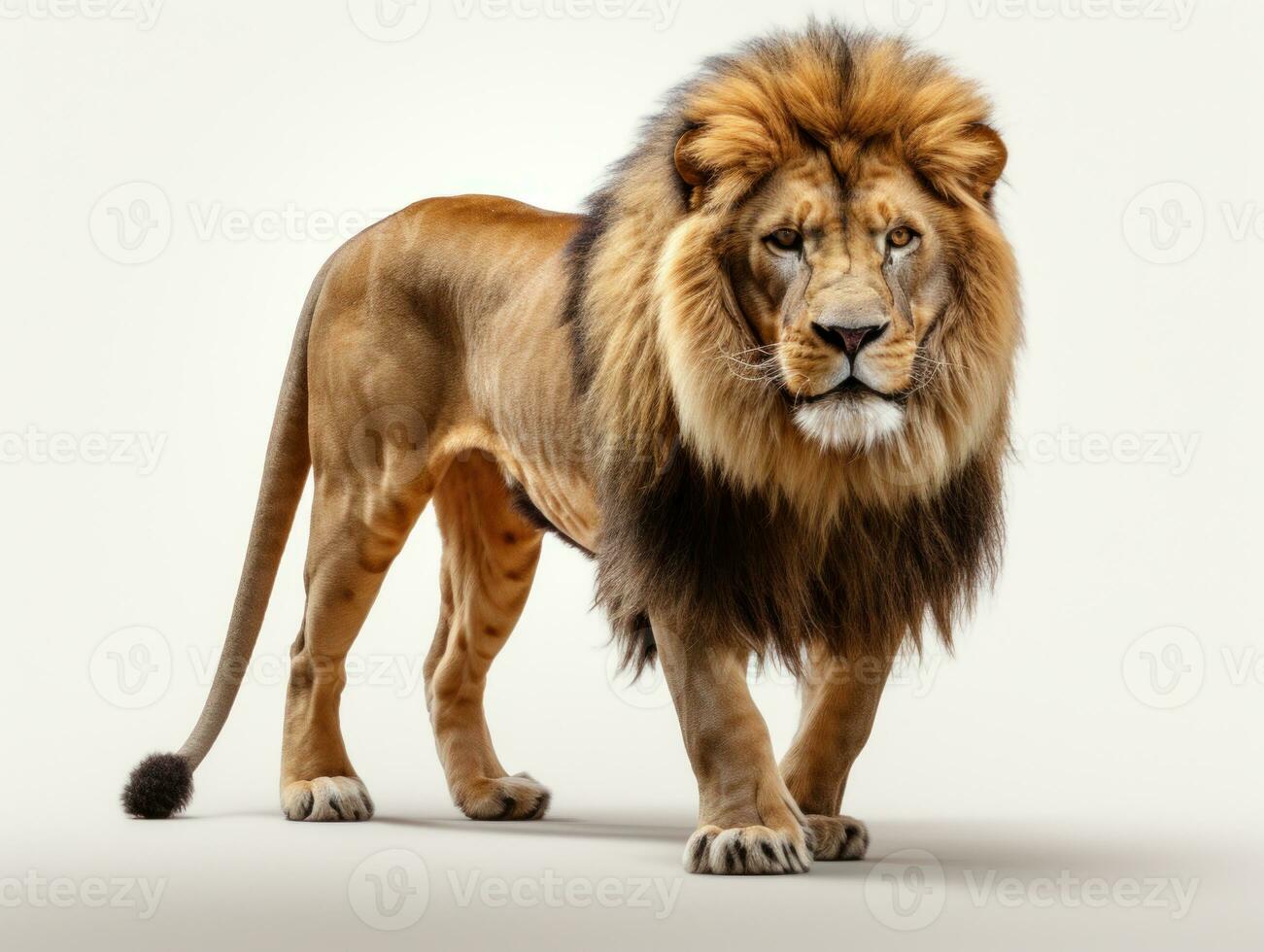 Big male lion standing on white background, front view. Side view. AI Generative Pro Photo