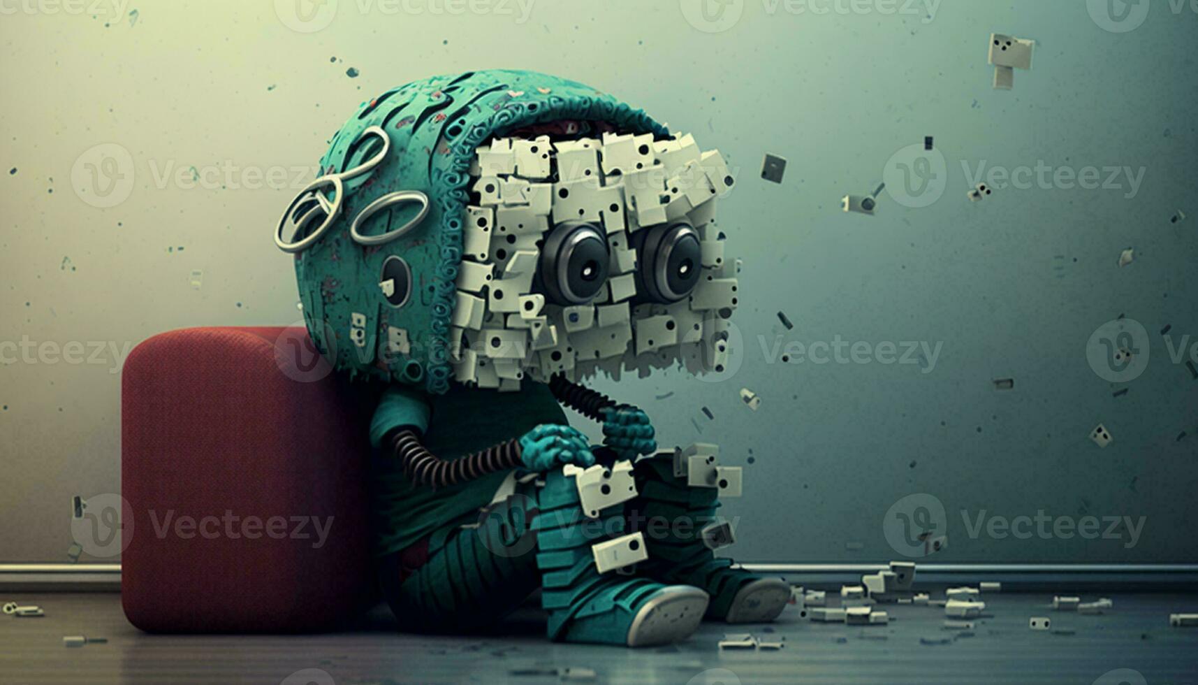 Cute introverted robot jigsaw puzzle. Generative AI. Pro Photo