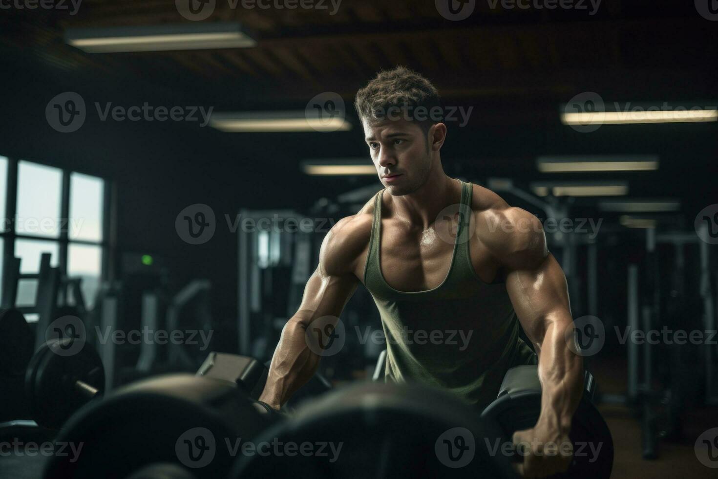 A dedicated athlete working out in a well-equipped gym, highlighting the importance of strength and conditioning. Generative Ai Pro Photo