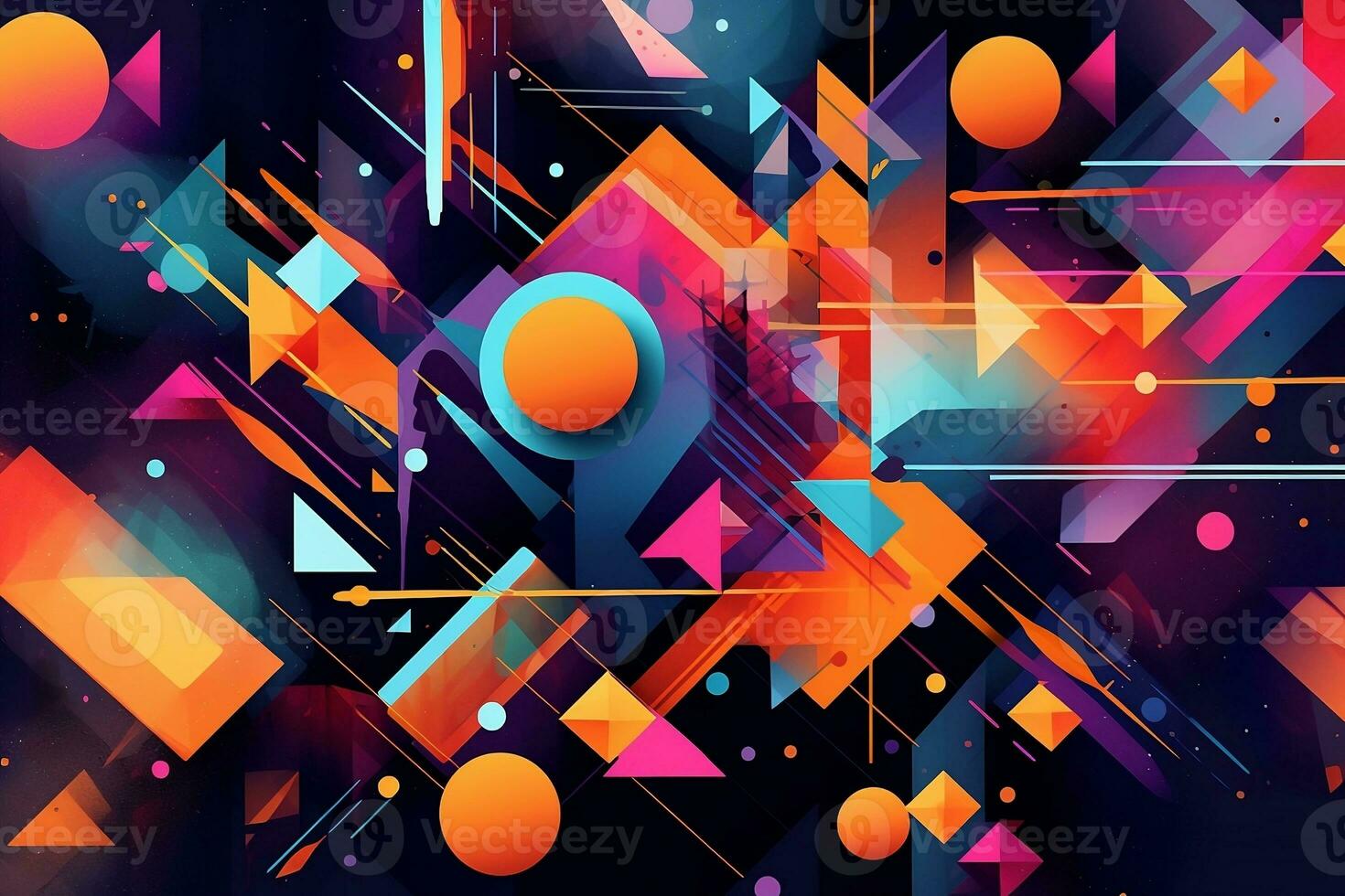 abstract geometric shapes and colors on a black background. generative ai Pro Photo