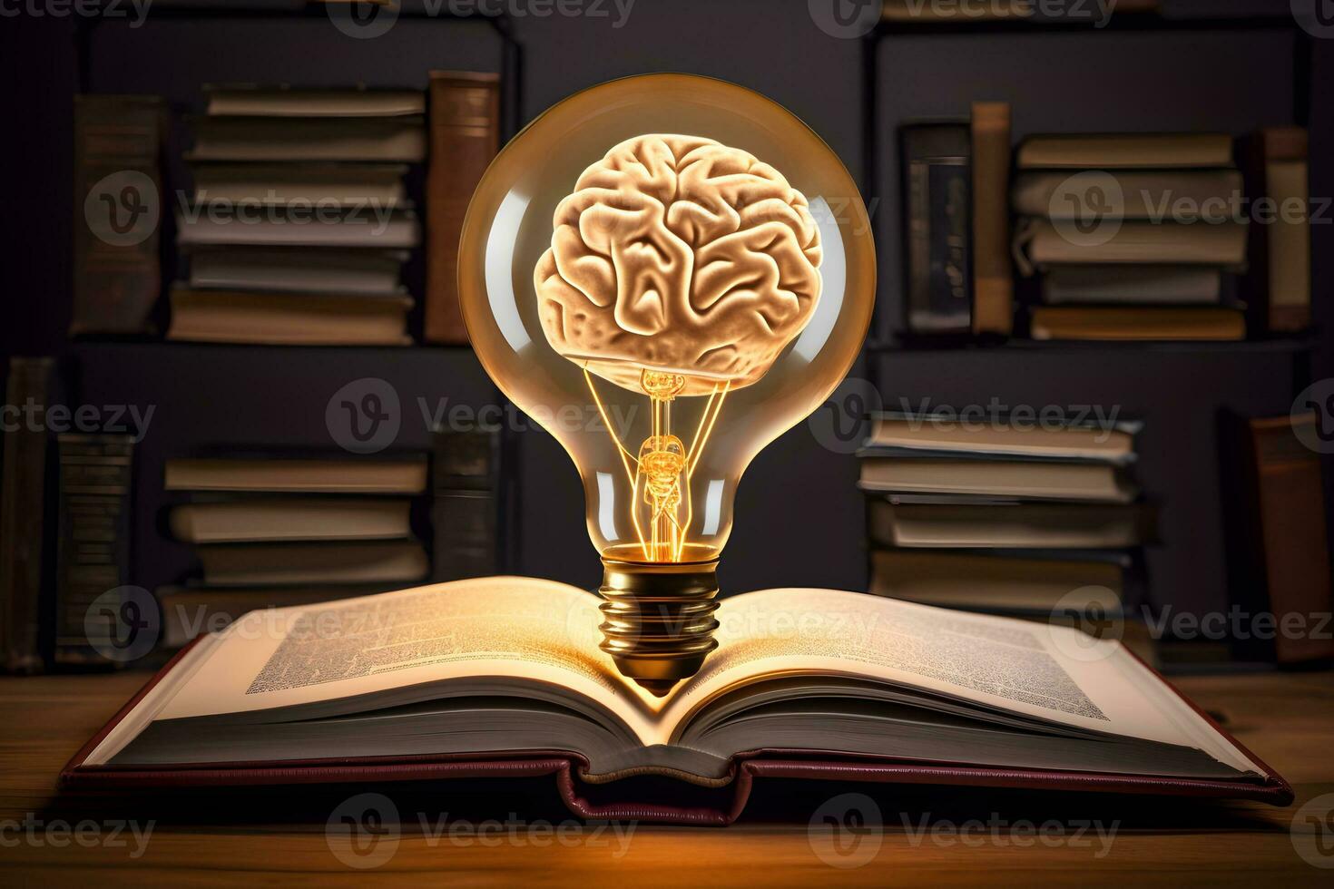 an open book with a light bulb inside of it. generative ai Pro Photo