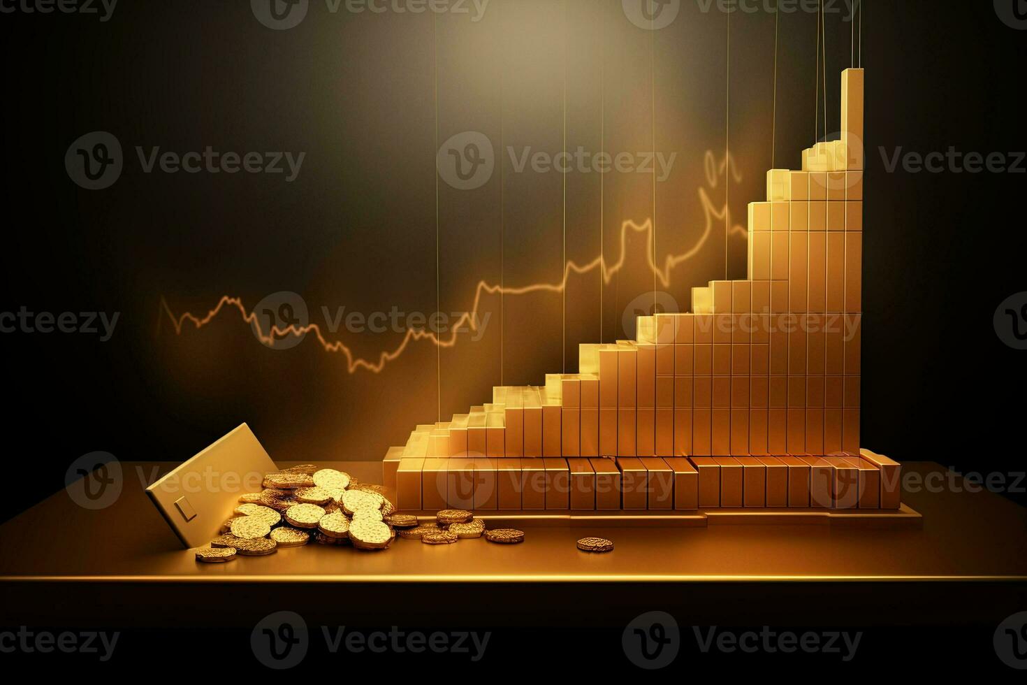 golden coins and a bar graph on a table. Generative AI Pro Photo