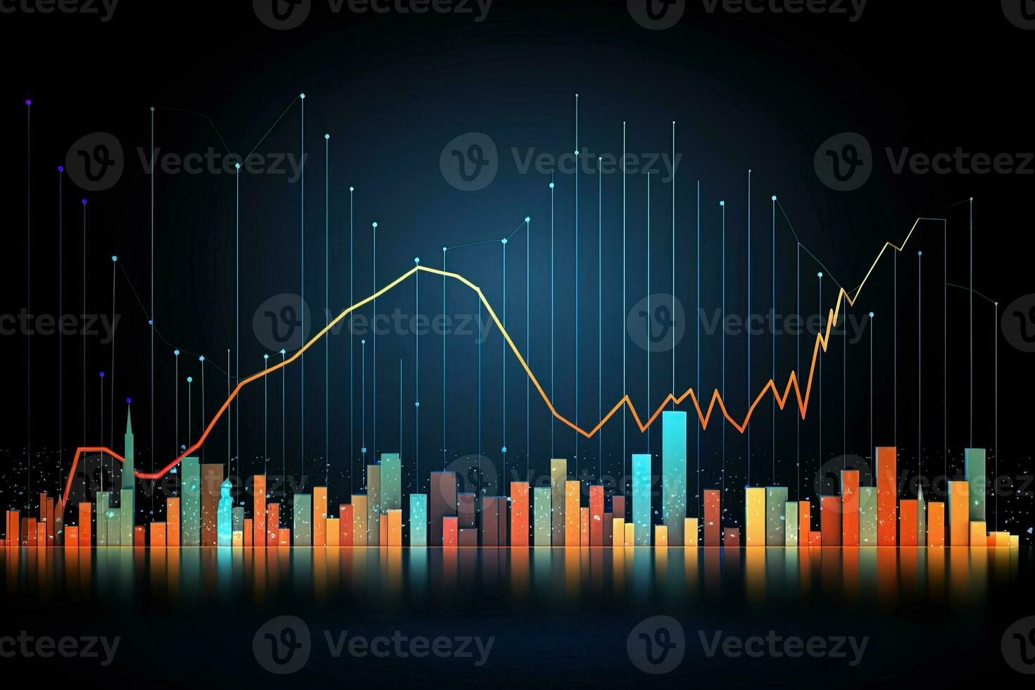 abstract graph of a city skyline with a line going up. Generative AI Pro Photo