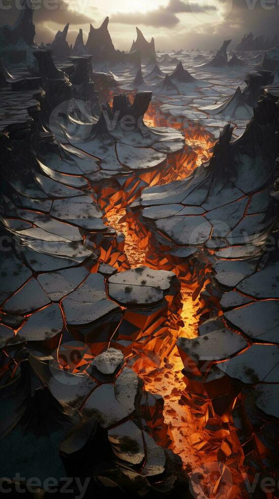 An image featuring intricate lava cracks in a volcanic landscape, vertical format, background image, generative AI Pro Photo
