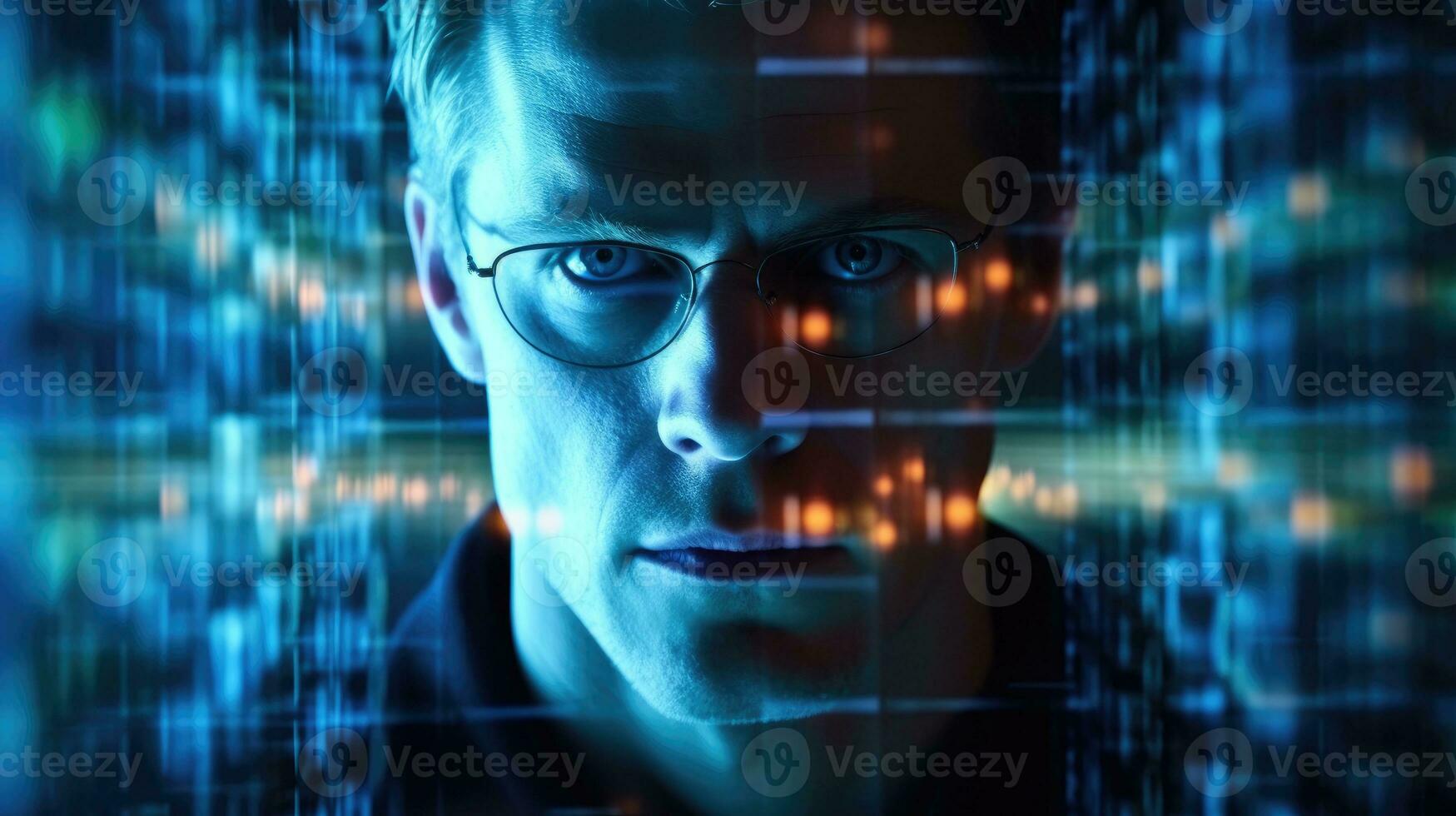 A cybersecurity expert and a complex network visualization. Generative AI Pro Photo