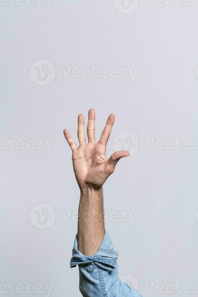Hand counting number five, Man hand showing number five, Guy finger counting number five on isolated background Pro Photo