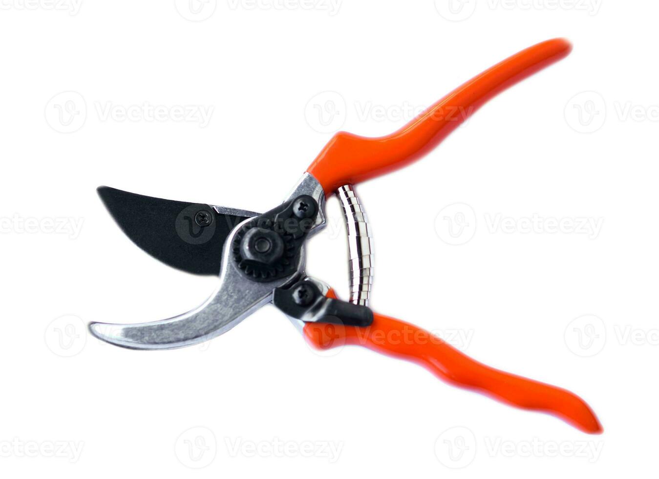 Pruner, Pruning scissors isolated on the white background. Concept, tool, equipment for working in garden, Use for pruning branches of trees, bushes, or grass. Gardening and agriculture tool. Pro Photo