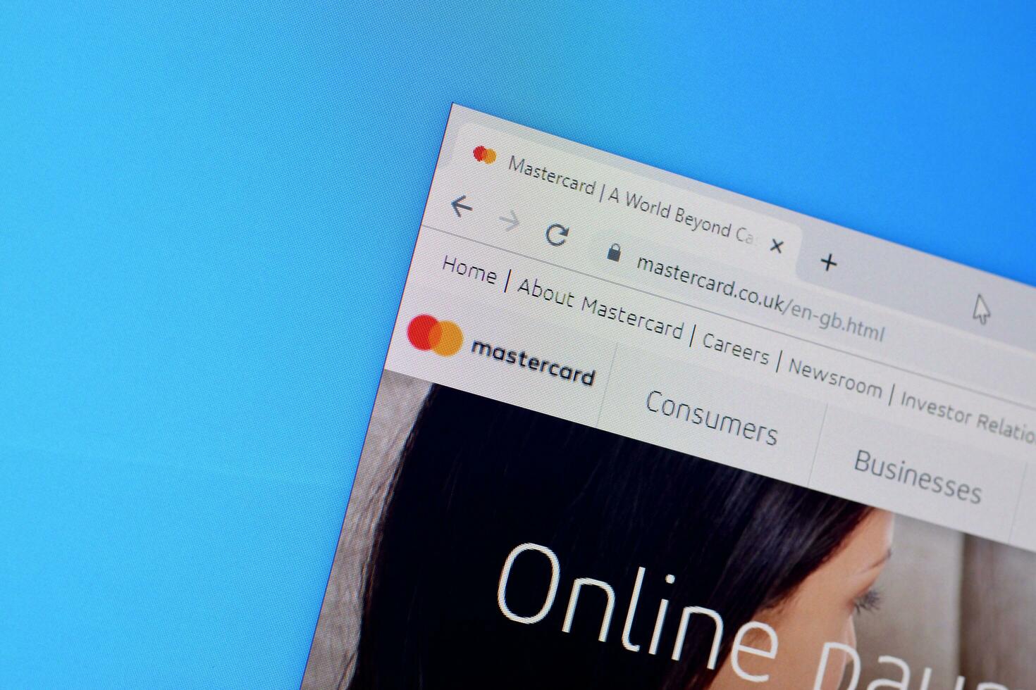 Homepage of mastercard website on the display of PC, url - mastercard.com.