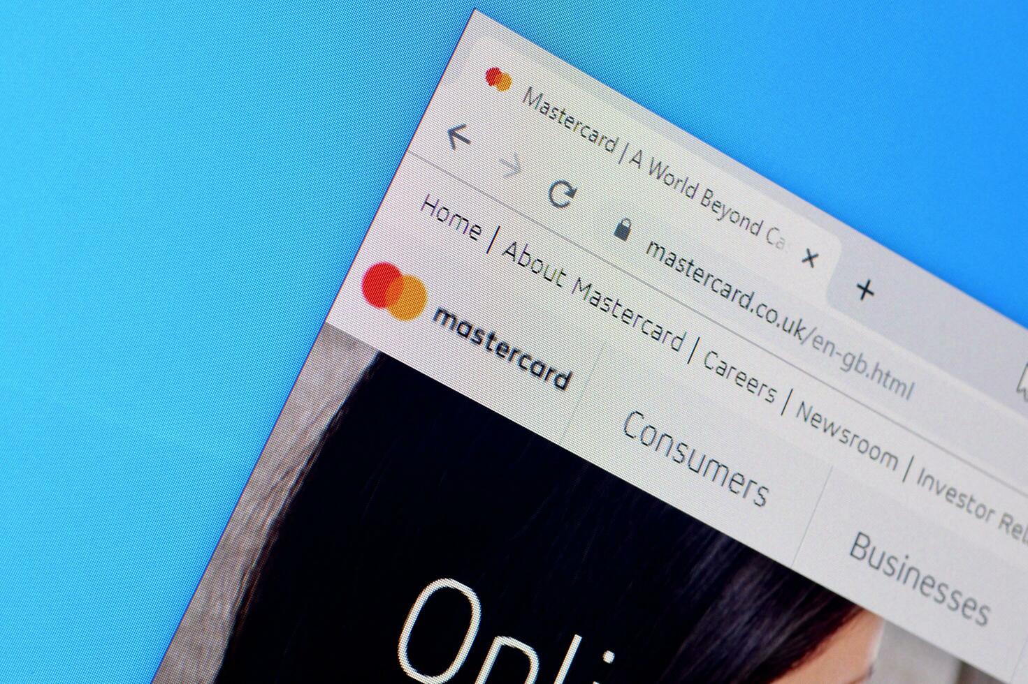 Homepage of mastercard website on the display of PC, url - mastercard.com.