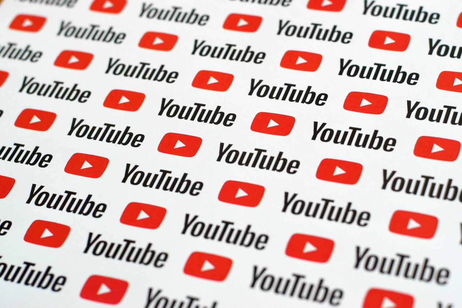Youtube pattern printed on paper with small youtube logos and inscriptions. YouTube is Google subsidiary and American most popular video-sharing platform photo