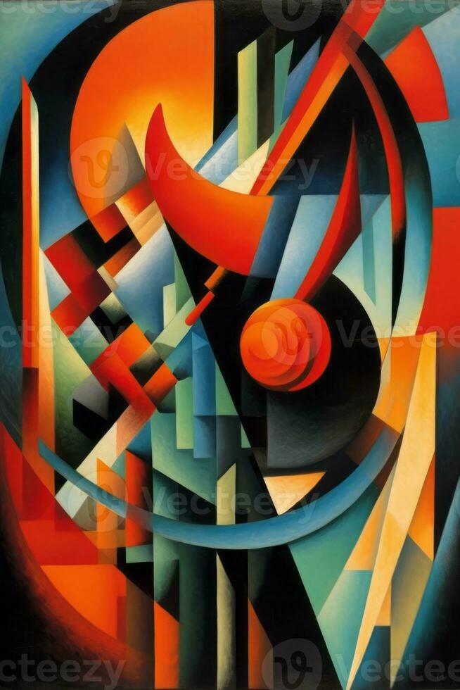An abstract composition featuring intersecting lines, dynamic shapes, and overlapping planes, representing the dynamism and energy of the Futurist movement. Generative Ai Pro Photo