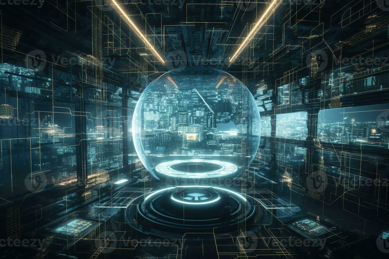 Global economy, featuring innovative technologies such as blockchain, artificial intelligence, or digital currencies, set against a sleek, modern, and forward-thinking backdrop. Generative AI. Pro Photo