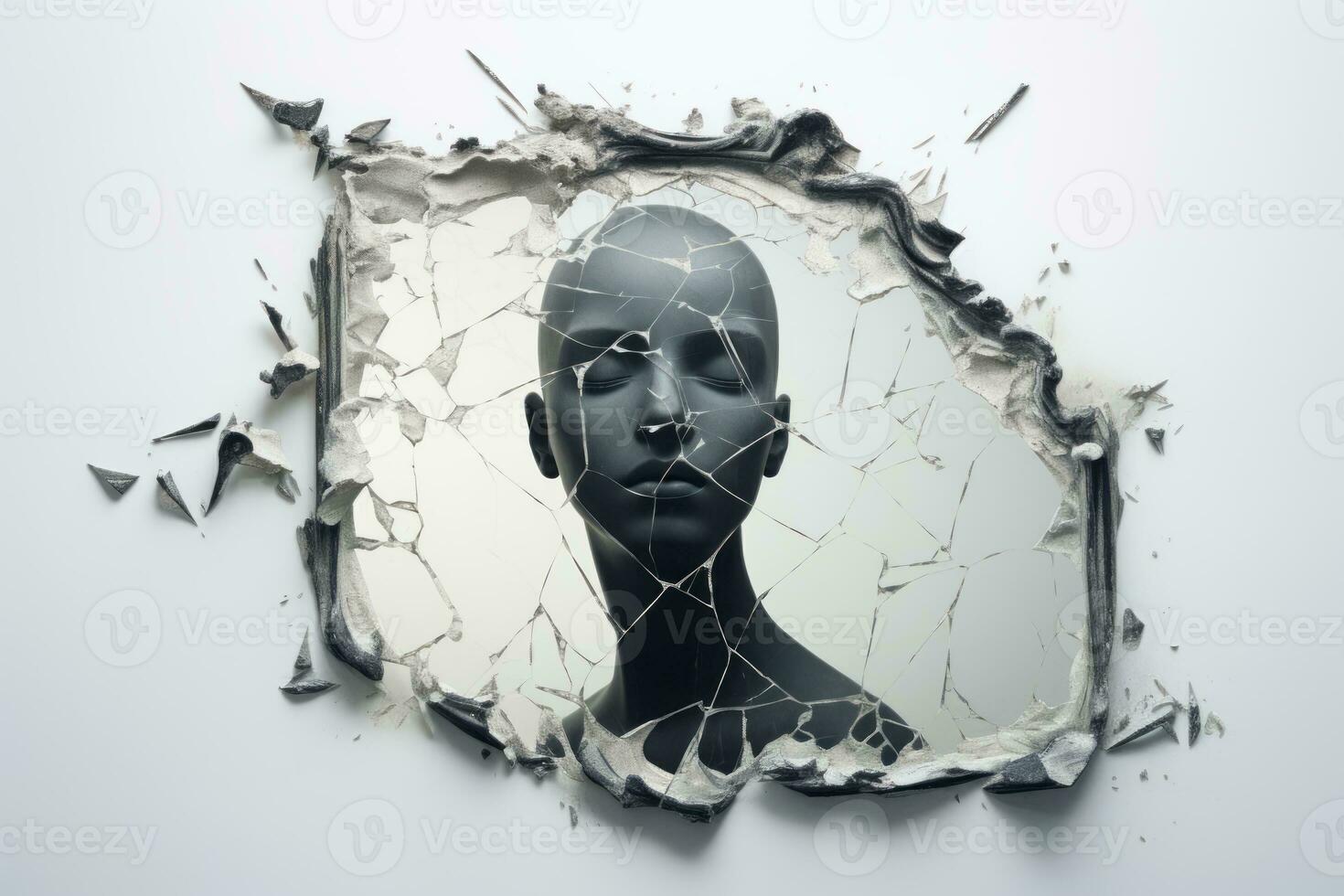 Man's face peering through a hole in a wall. Generative AI Pro Photo