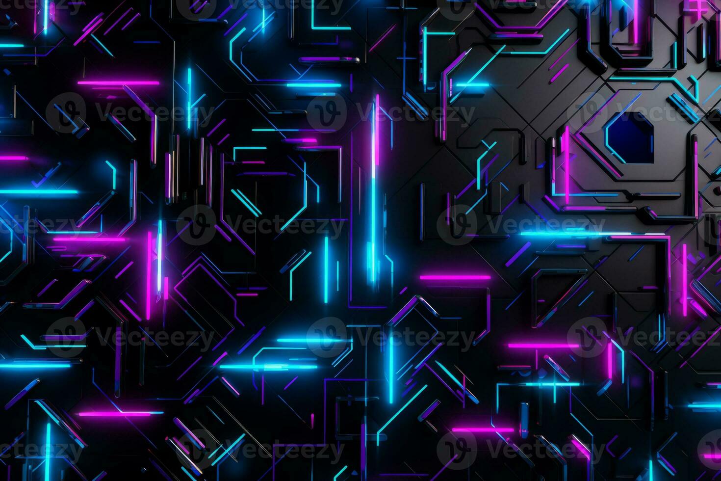 Futuristic abstract cyberpunk pattern with neon accents and digital overlays. Generative AI Pro Photo