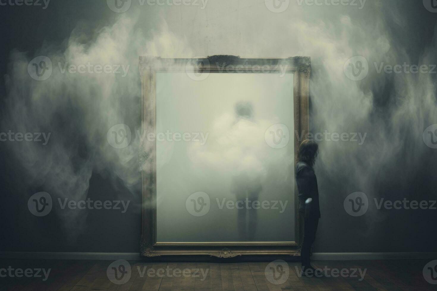 Obscured Self-Perception in Mirror. Generative AI Pro Photo