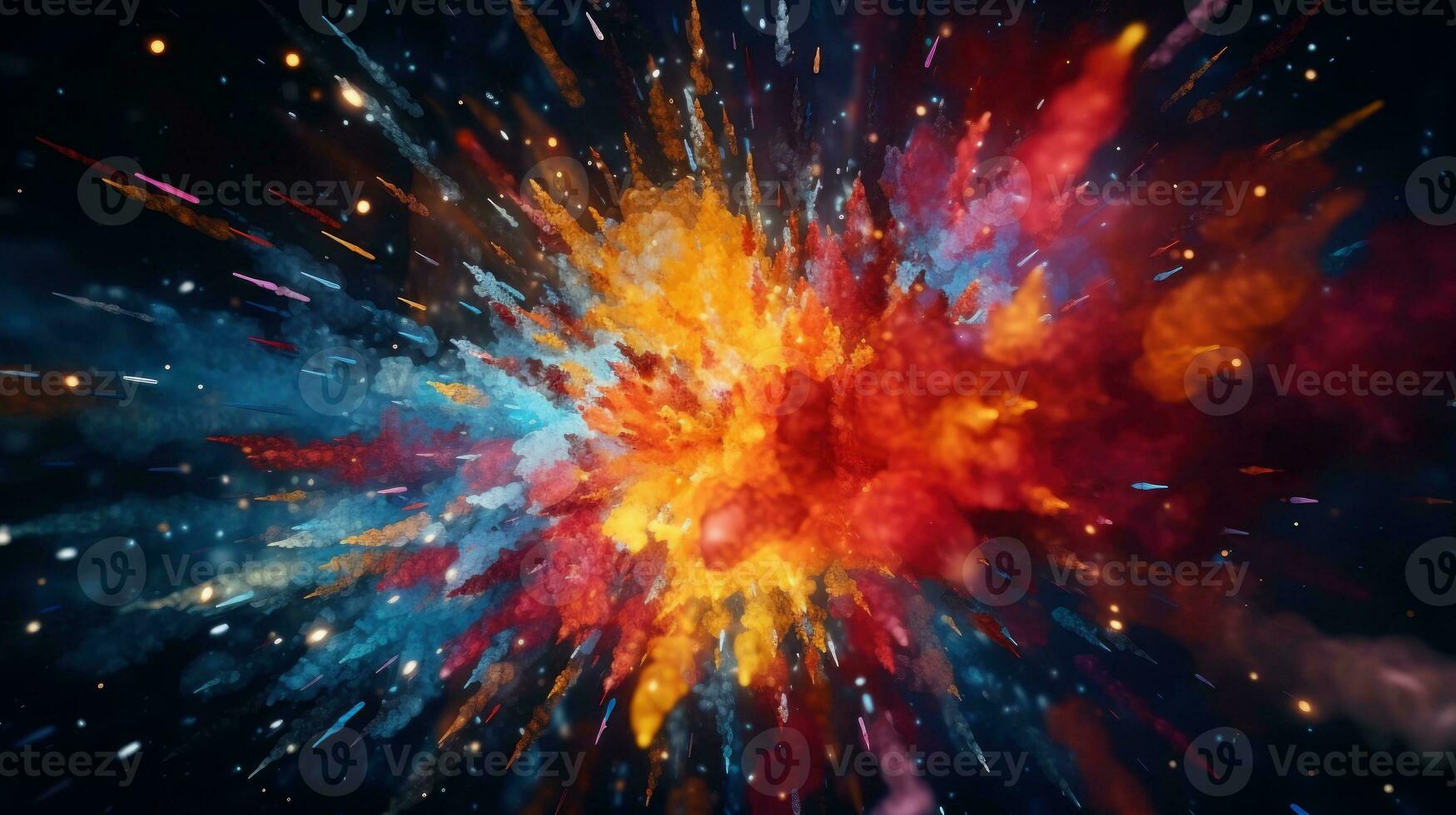 Colorful particles and sparks bursting and dispersing. Generative AI Pro Photo