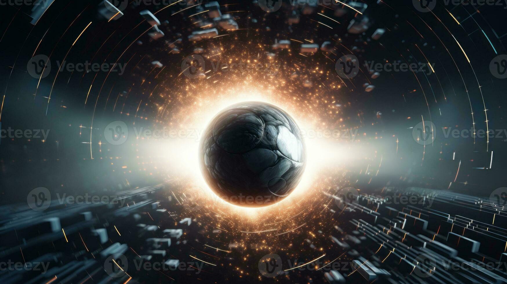 Dynamic audio frequencies forming a pulsating sphere. Generative AI Pro Photo