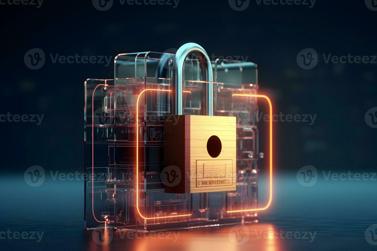 Lock with circuit pattern. Concept of data security, cybersecurity, cyber defense, etc. Pro Photo