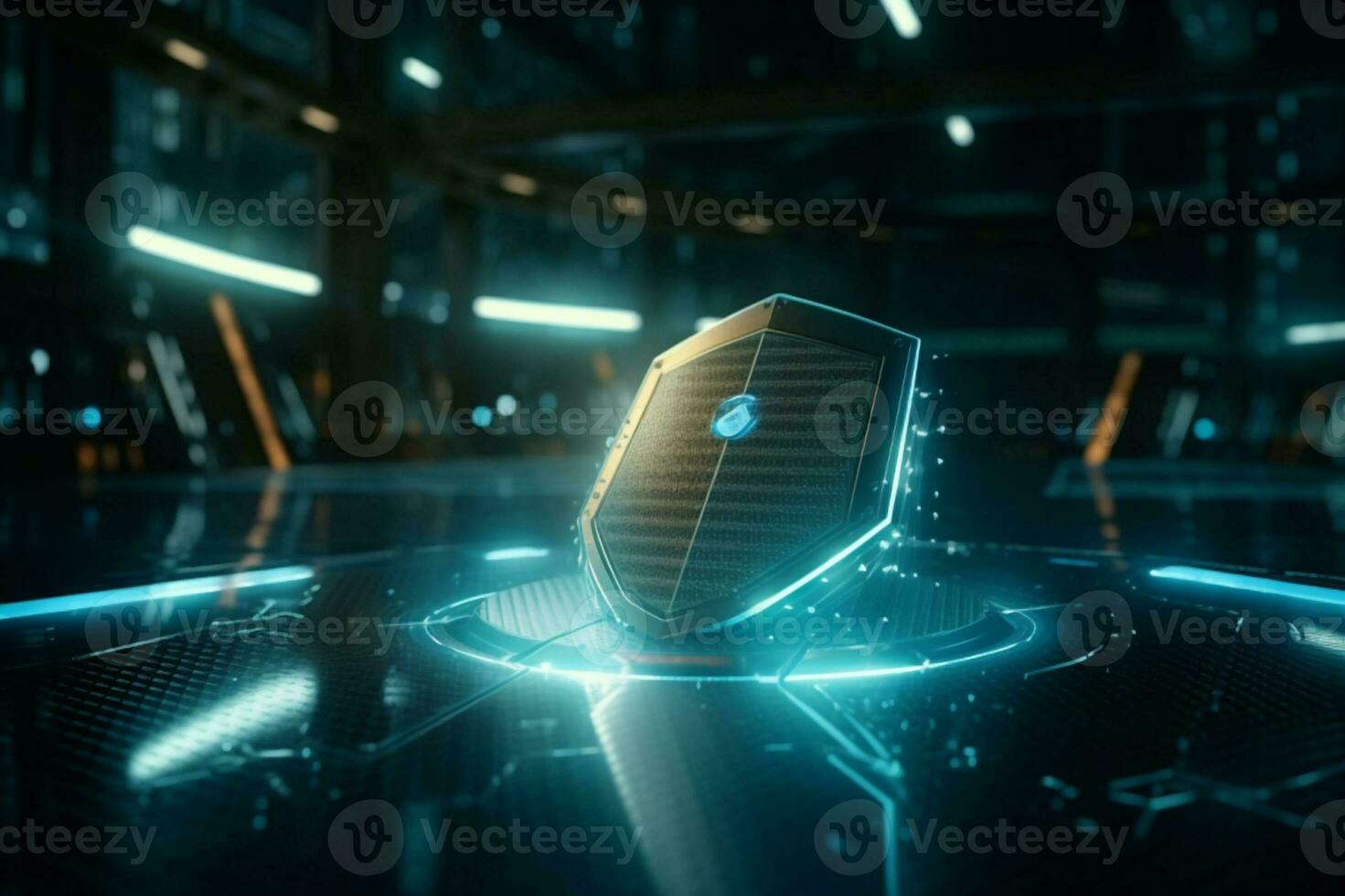 Generative AI. Futuristic Data Shield The Background of Safety Technology and Secure Data Connections Pro Photo