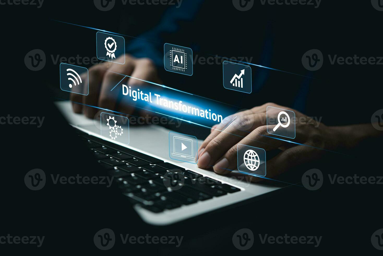 technology strategy for digital transformation involves the digitization of business processes and data. optimize customer service management. IoT and digital software Artificial Intelligence Pro Photo