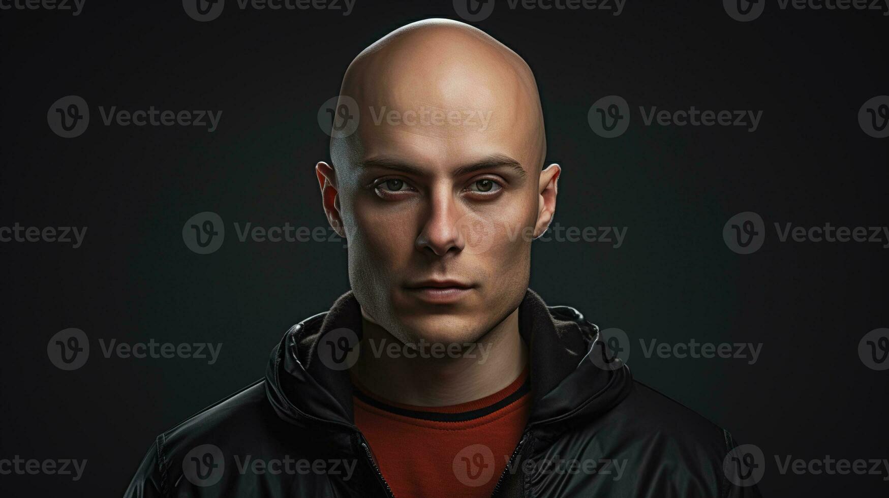 a bald man with a black jacket on. generative ai Pro Photo