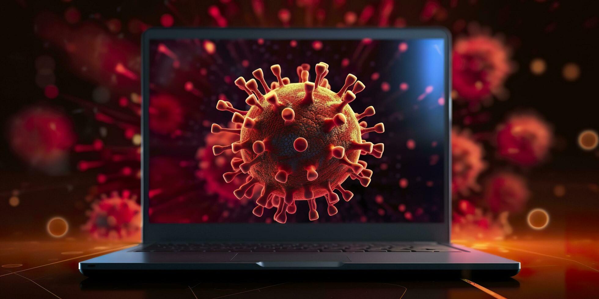 Computer screen showing an installing update notification with a virus symbol,  AI Generative photo