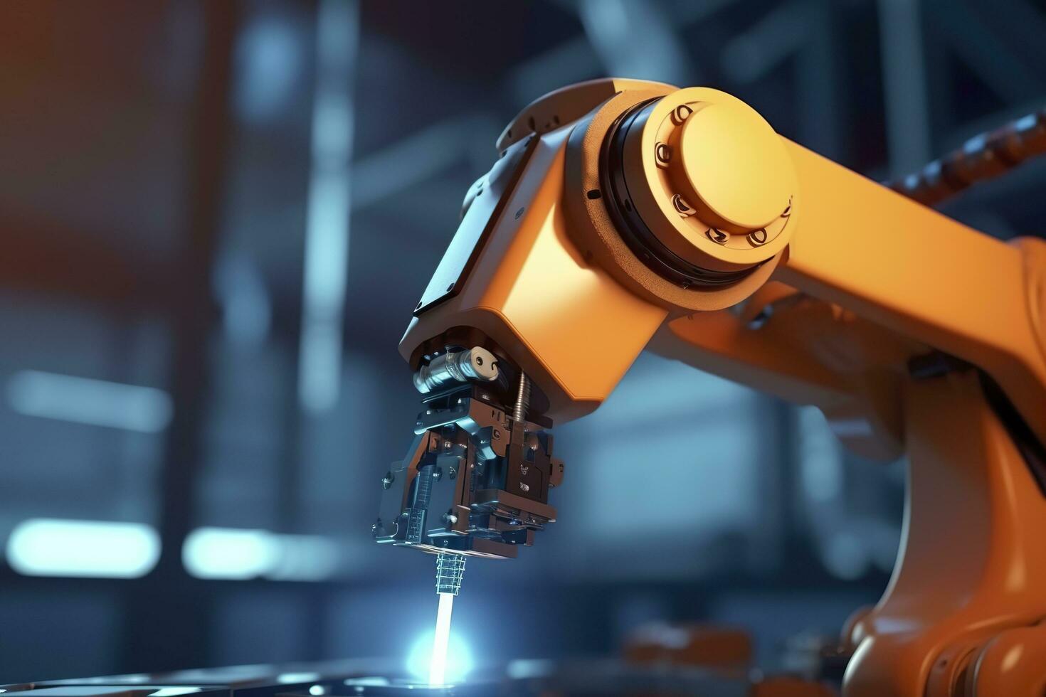 Arm robot working with Screen monitor control industrial machine robot arm line. Generative AI Free Photo