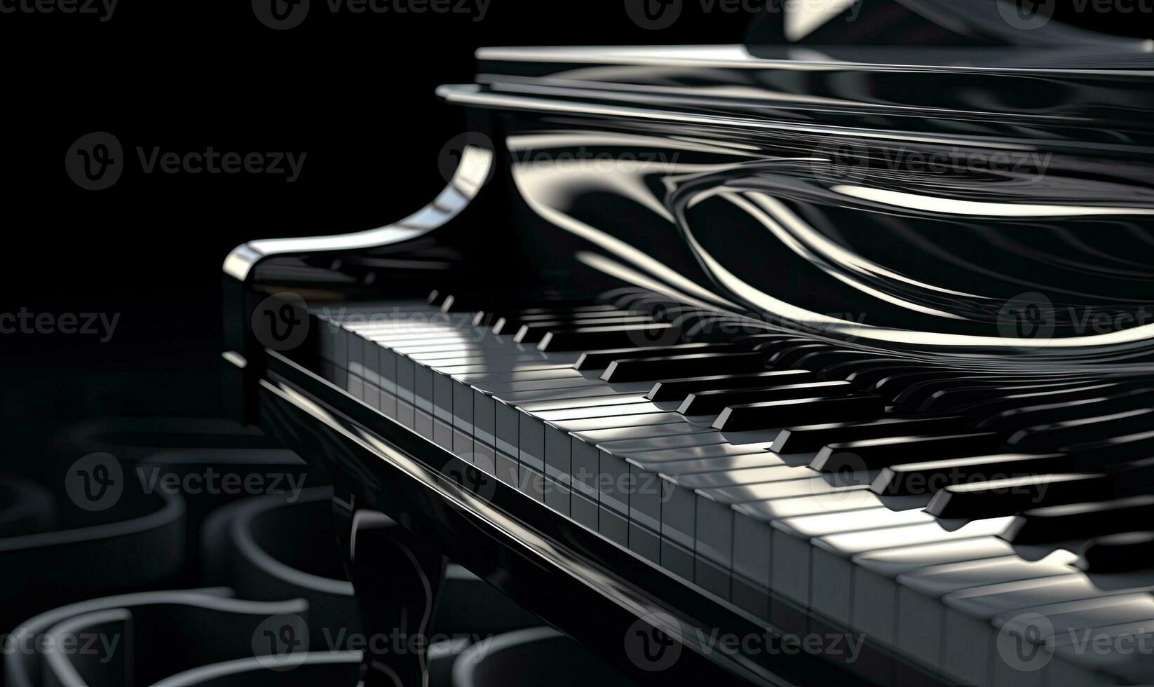 Beautifully crafted grand piano with a unique curved keyboard. Creating using generative AI tools Pro Photo