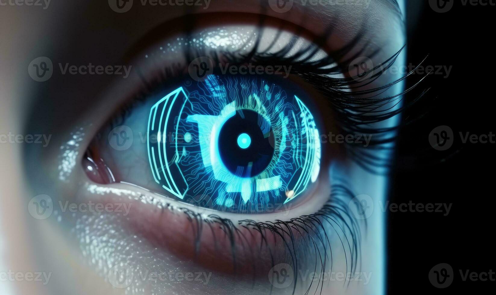 Close-up high-tech image of human eye. Technology concept. Creating using generative AI tools Pro Photo