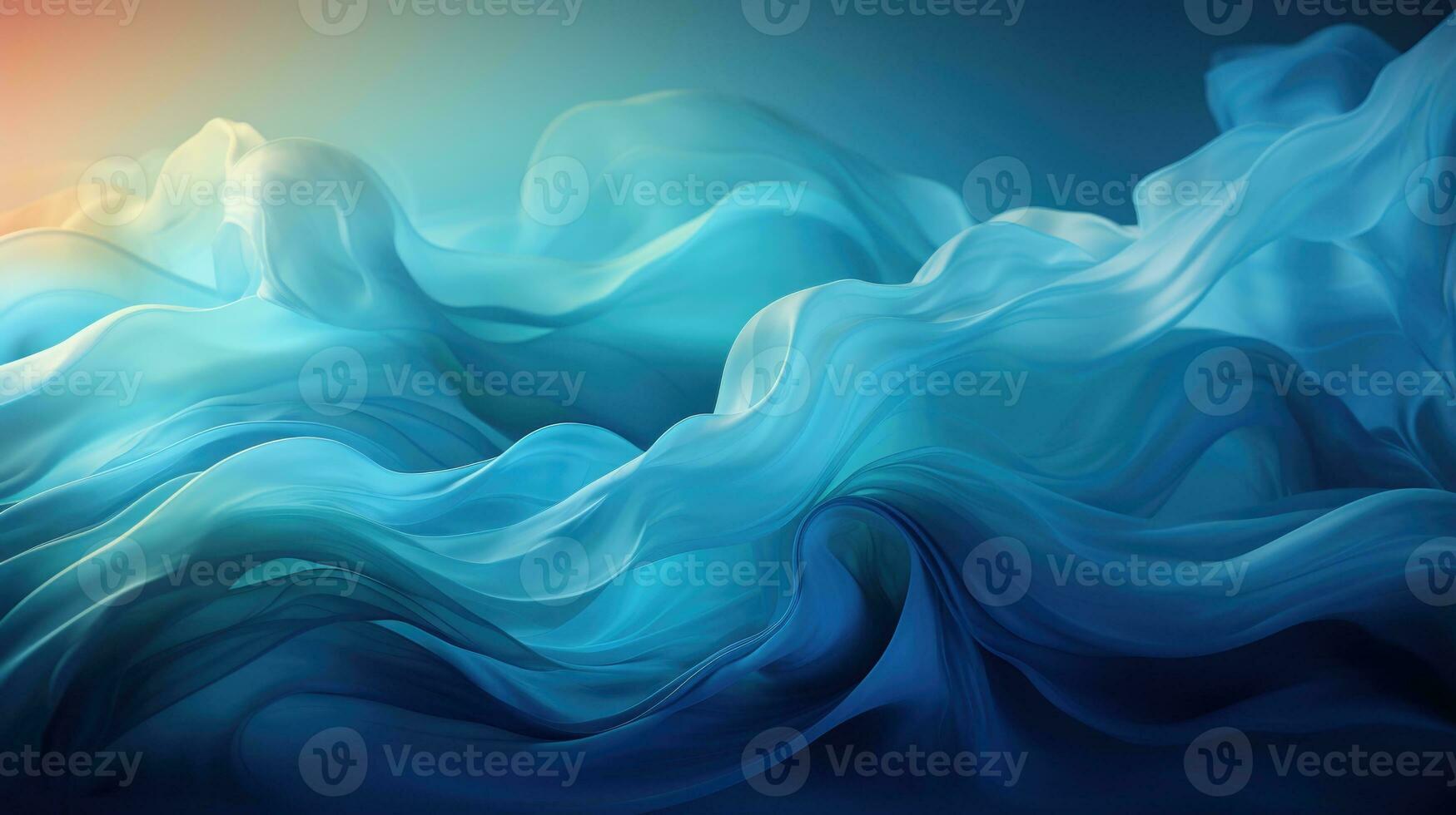 A digital art image of a fluid, wave blue landscape with a bright light source.. AI generative Pro Photo
