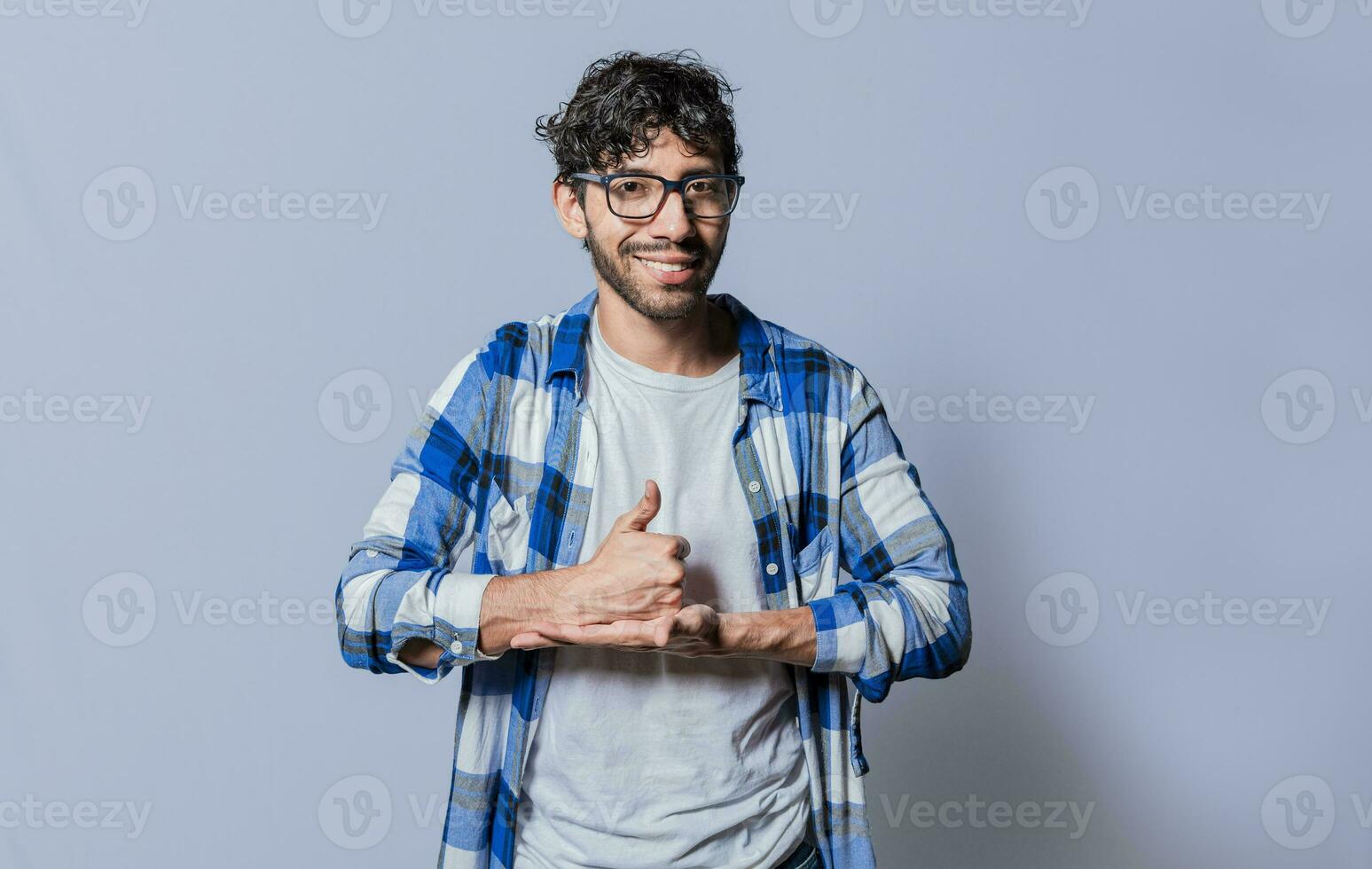 Person gesturing help with hands in sign language, Young man showing help gesture with hands in sign language. Interpreter man gesturing help with hands in sign language Pro Photo