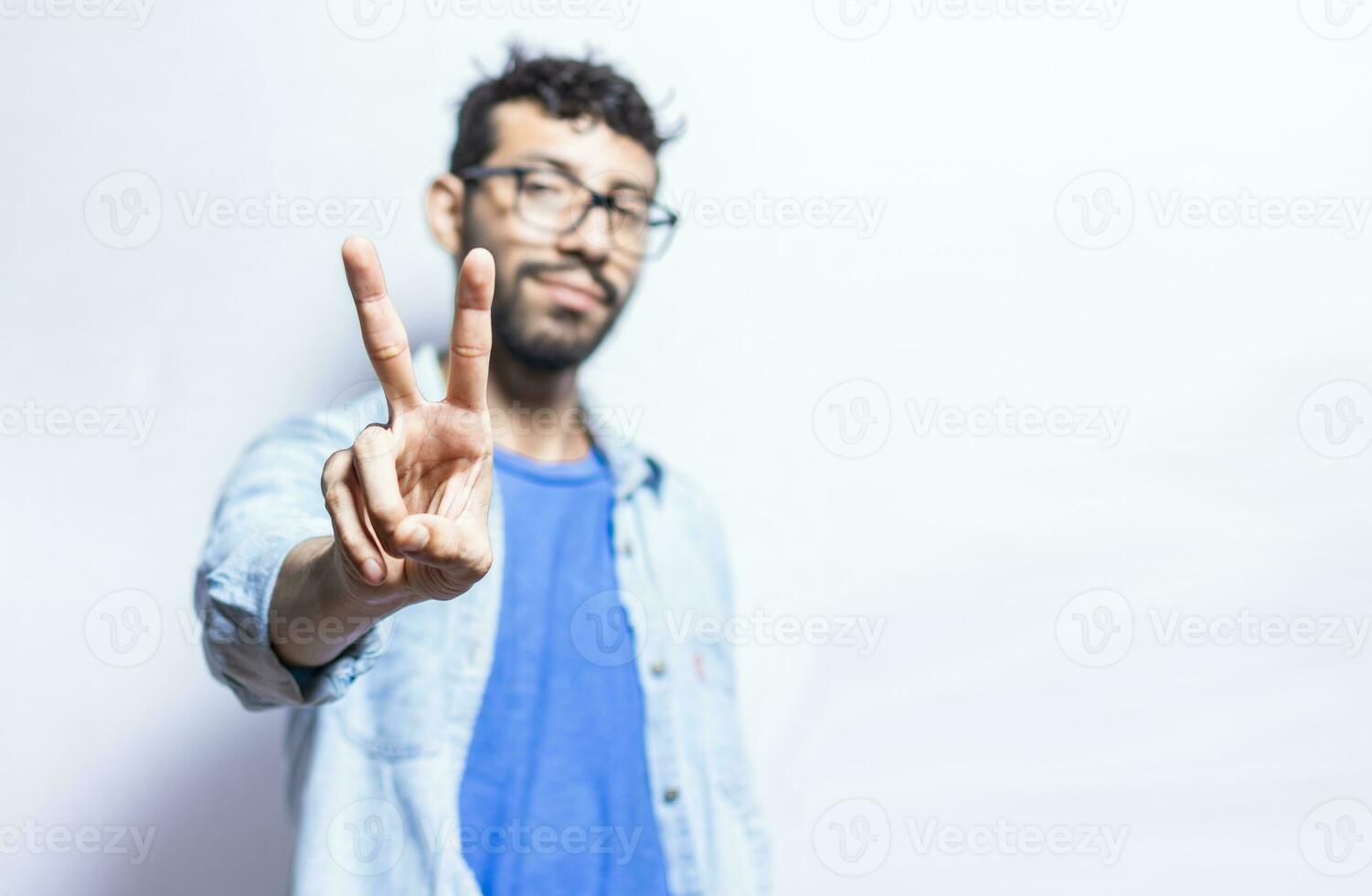 People finger counting the number two on an isolated background. Person hand counting number two. Handsome guy hand showing number two Pro Photo