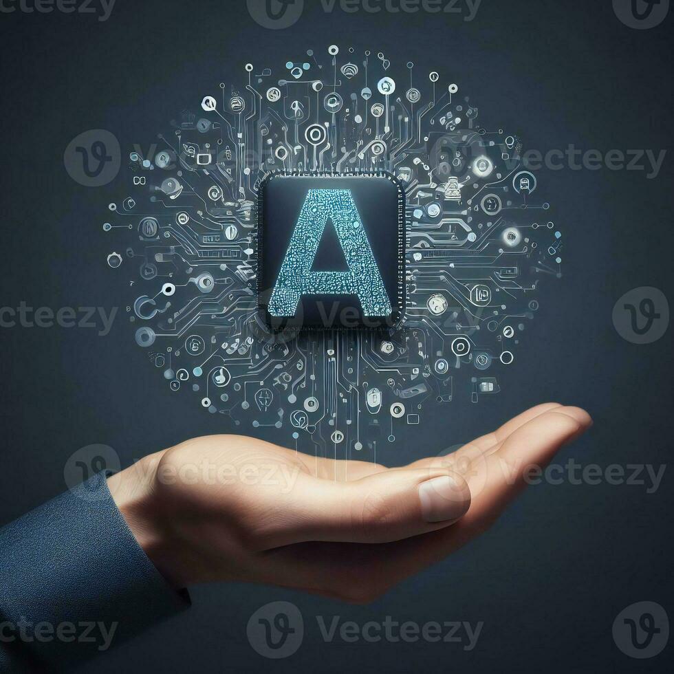Hand holding AI typography for innovation of artificial intelligence technology ai generative Pro Photo