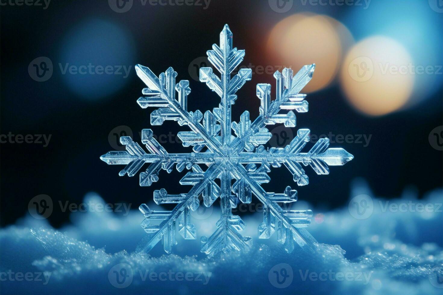 A macro view of a single, intricate snowflake, designed for text AI Generated Pro Photo