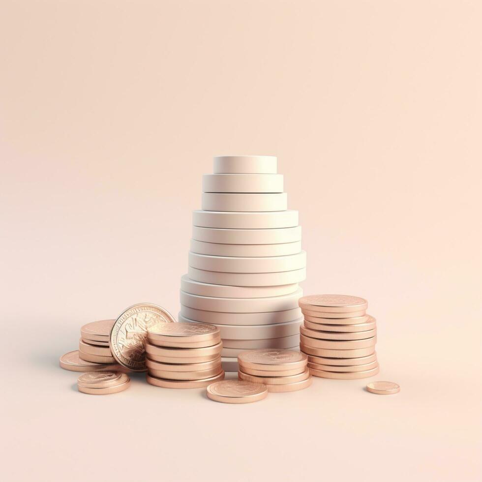 AI GENERATION stack of coins. Pastel background. 3D rendering. Financial and investment business concepts photo