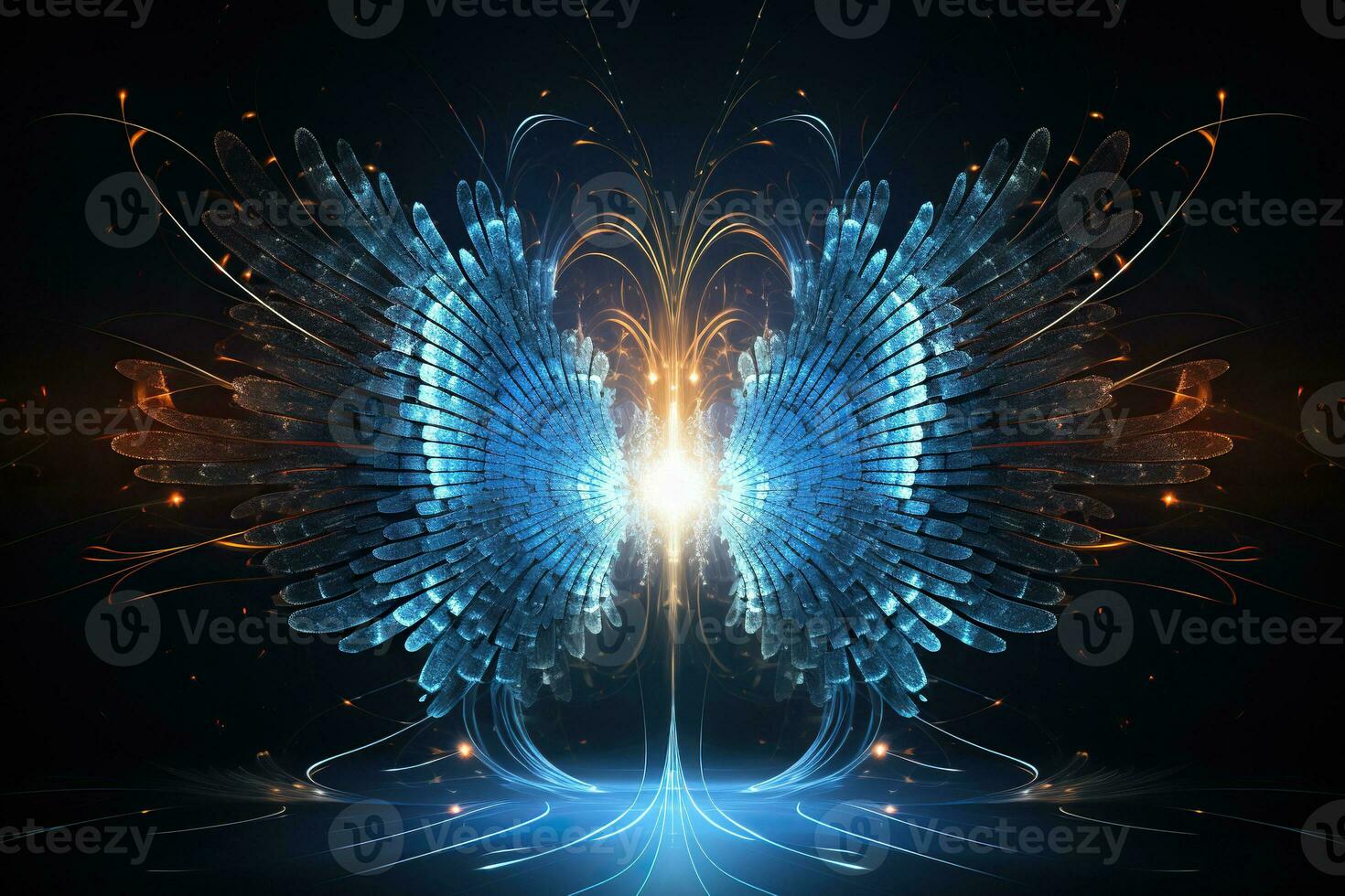 Digital graphic background in the form of wings. Abstract neon background in the form of wings. Generated by artificial intelligence Pro Photo