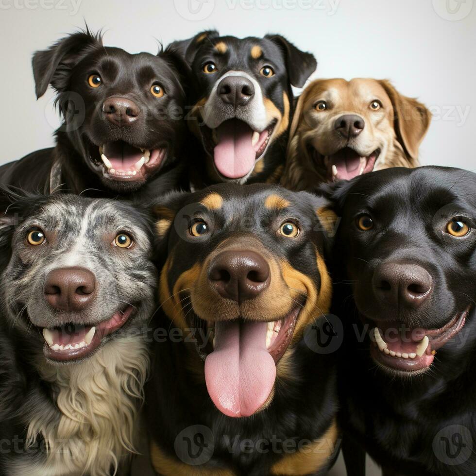 A photo of Group of happy dogs in front of a white background. Studio shot. Generative AI Pro Photo