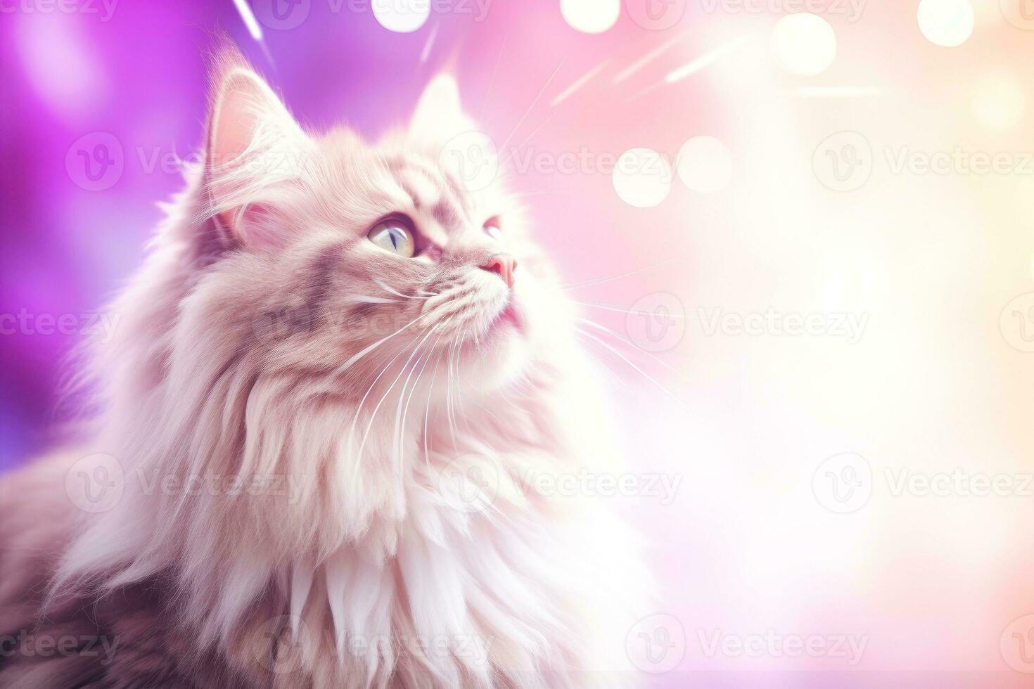 AI generated Close-up of cute cat gazing at something with beautiful bokeh background, Generative AI Pro Photo