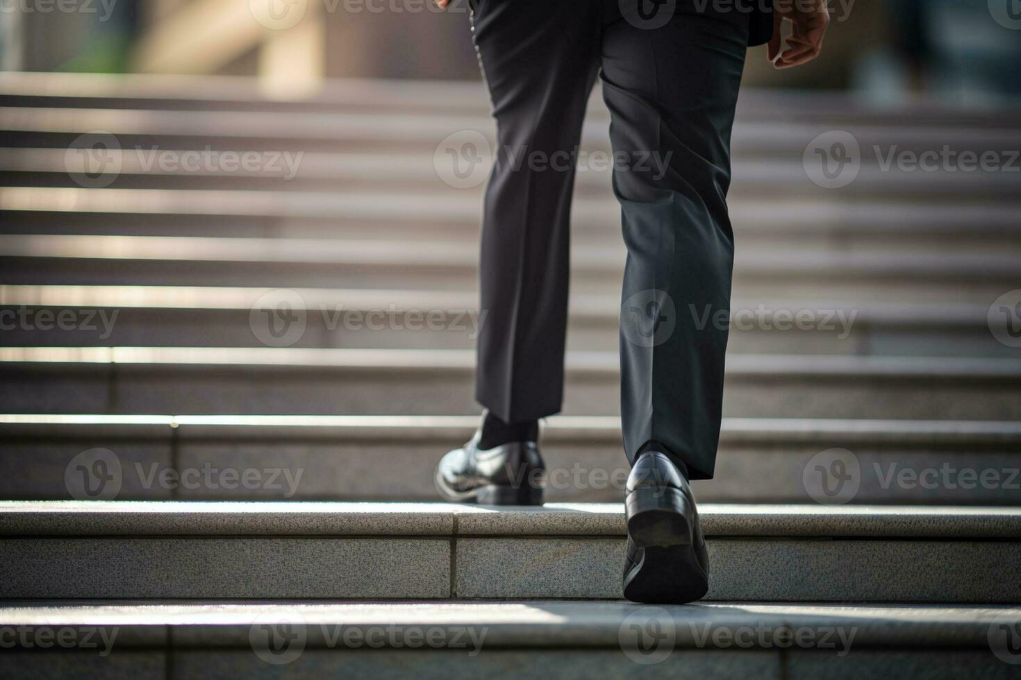 a business man walking up the steps bokeh style background with Generative AI Pro Photo
