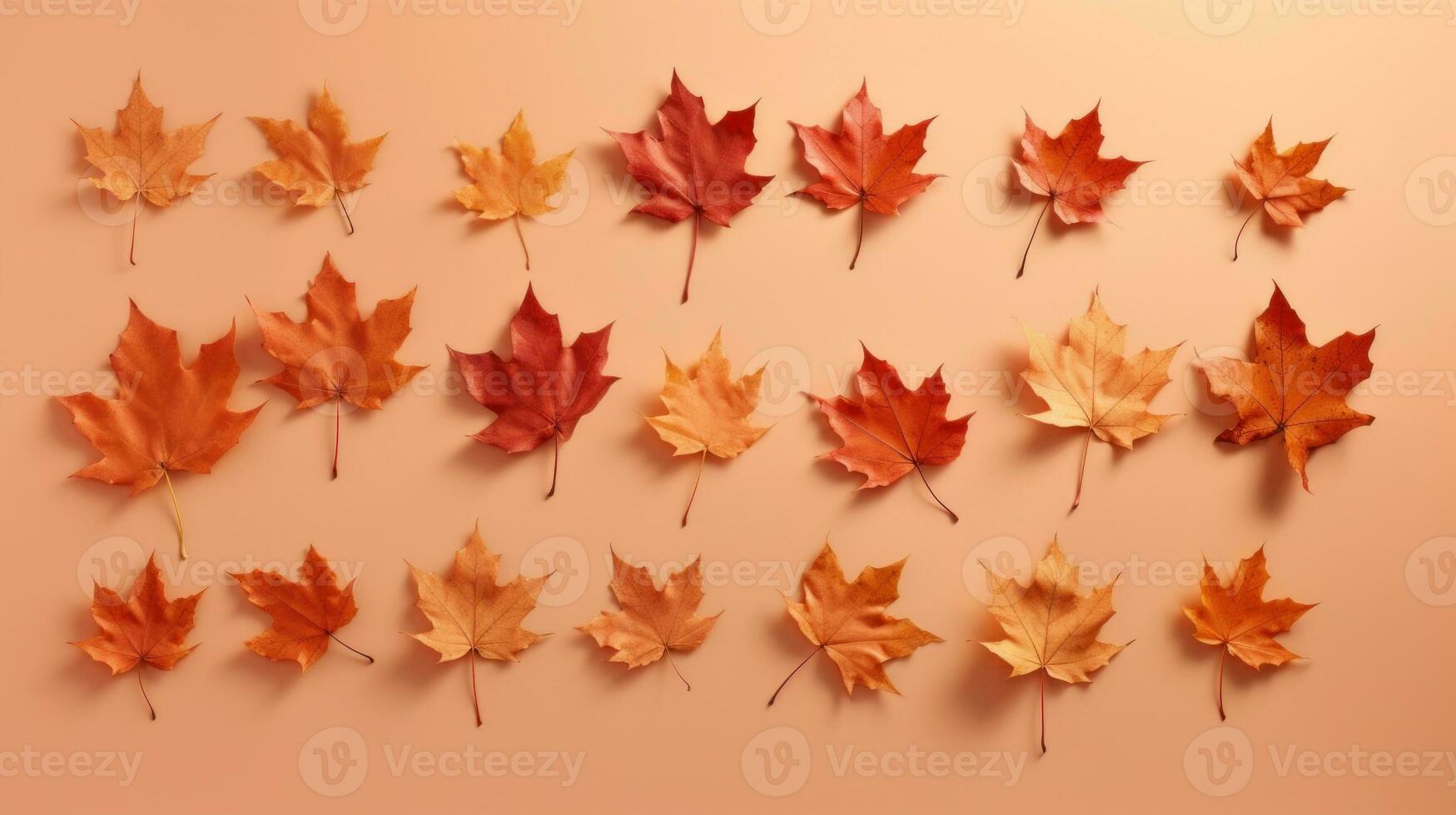 ai generative Autumn background with maple leaves. Flat lay, top view. Pro Photo