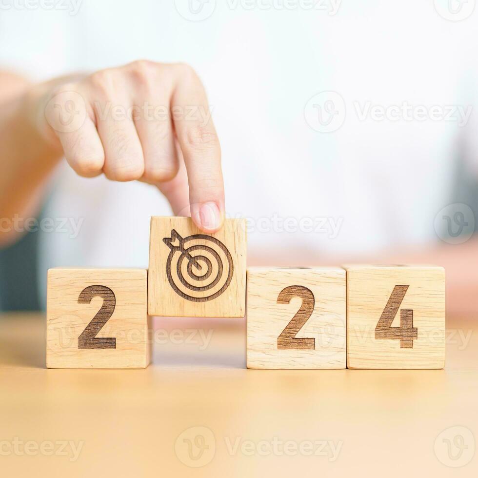 2023 year change to 2024 year block with dartboard icon. Goal, Target, Resolution, strategy, plan, Action, mission, motivation, and New Year start concepts Pro Photo