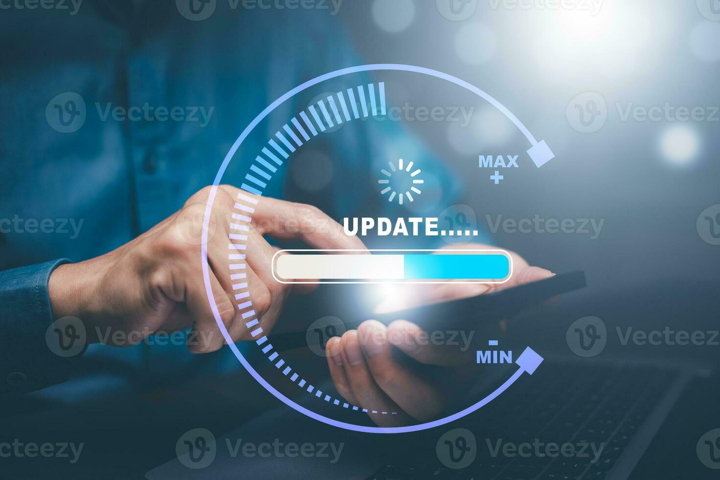 High performance speed internet connection network technology, Man using Internet high speed by smartphone and laptop computer, 5G quality, speed optimization with fiber optic. Pro Photo