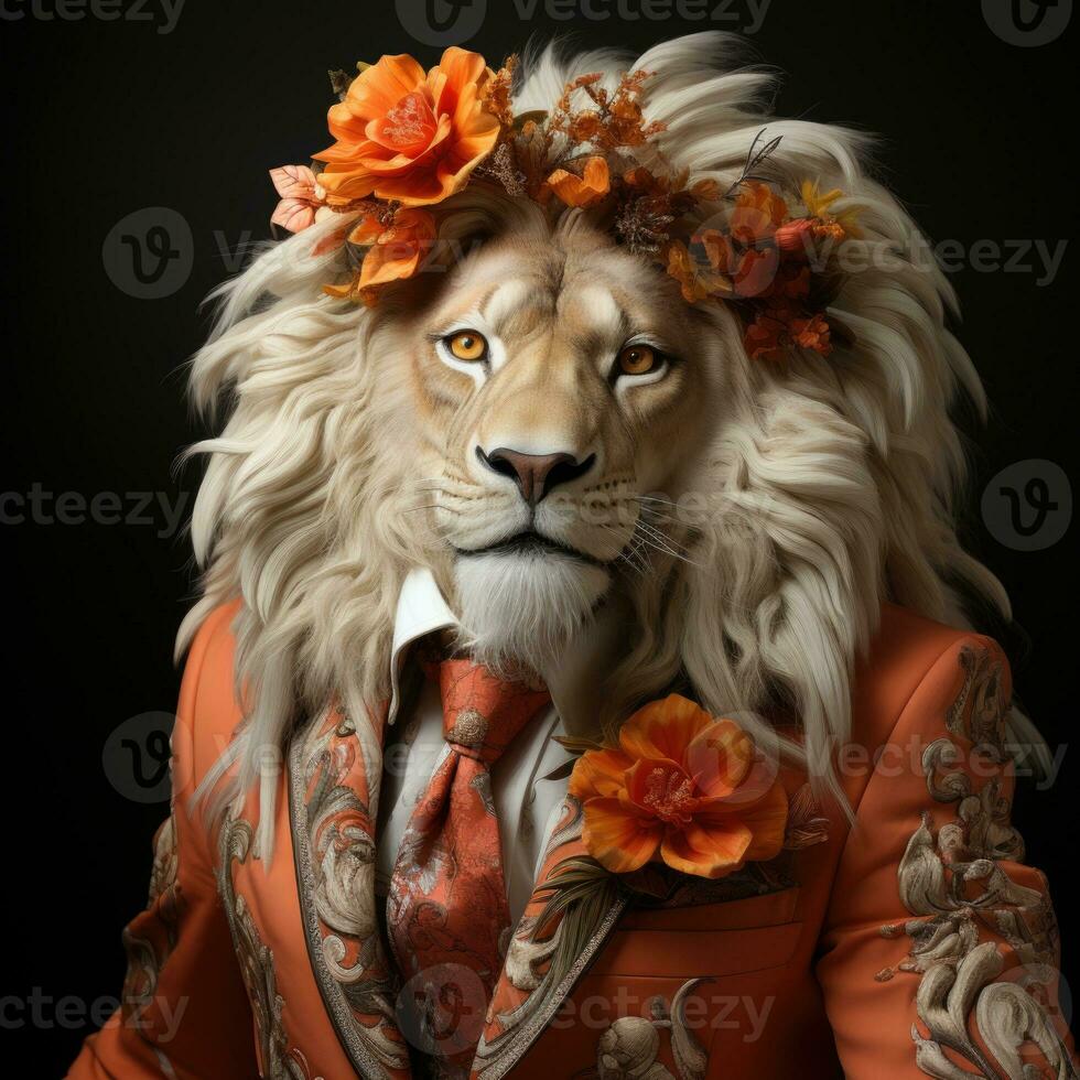 AI generated Realistic Image Lion in Man Suit Looking at Camera at Night in Paint Coat Generative AI Pro Photo