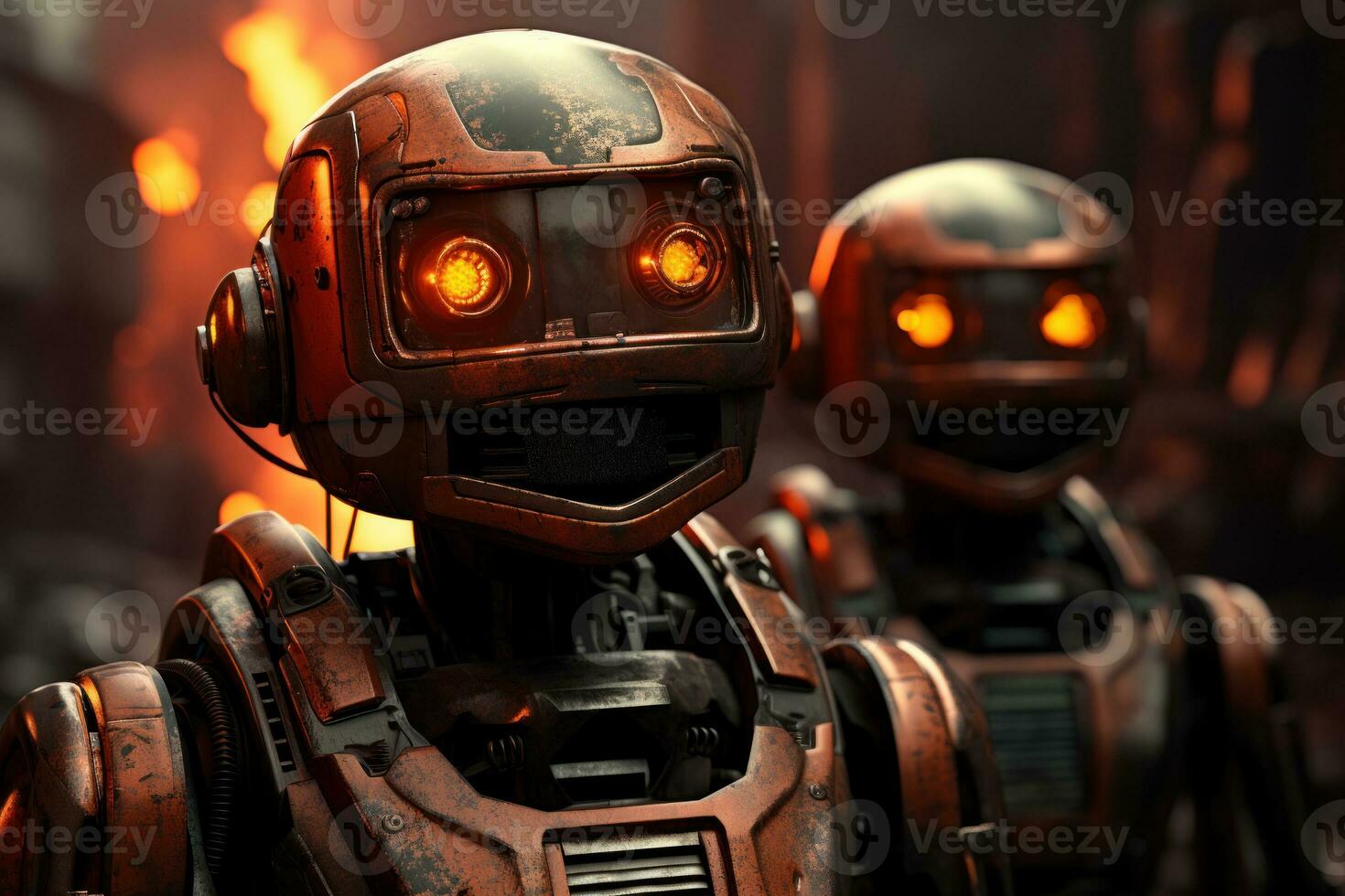 AI generated Advanced technology at work robots ensuring urban safety by extinguishing fires, futurism image Pro Photo